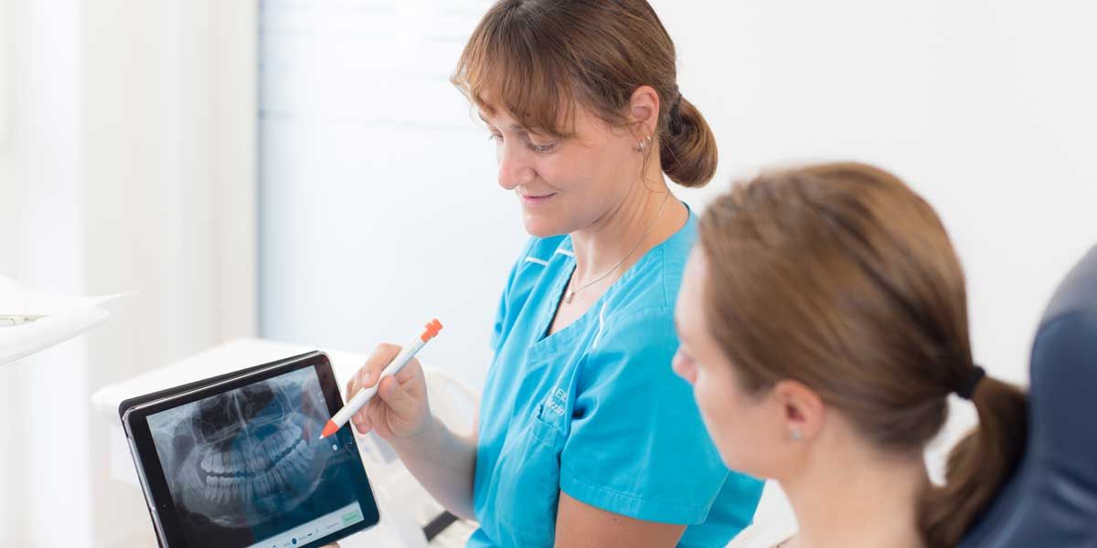 Digitale Röntgentechnik ist ein Meilenstein in der Diagnostik. Sie gewährt Einblick in die innere Beschaffenheit der Zahnsubstanz, die mit bloßem Auge nicht möglich werden. Aufnahmen können beliebig vergrößert und die Kontraste angepasst werden. Insbesondere bei der Erkennung von Karies ist der Behandler so einen entscheidenden Schritt voraus.